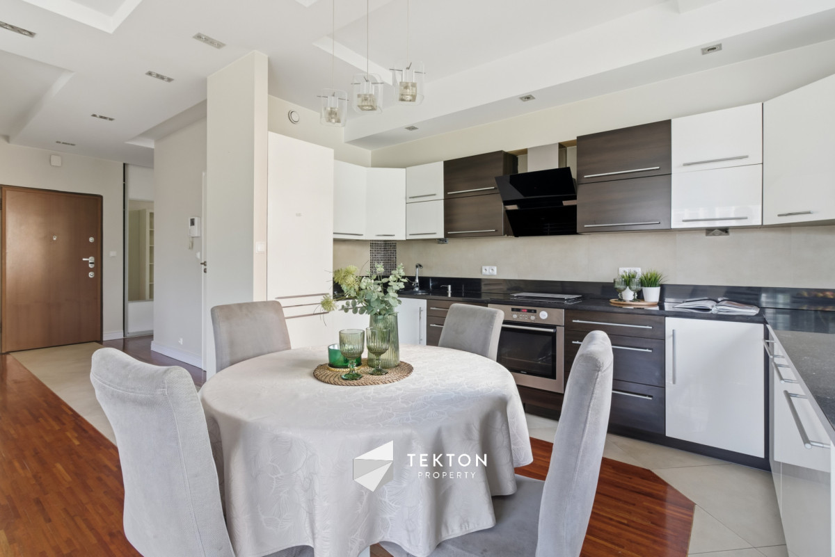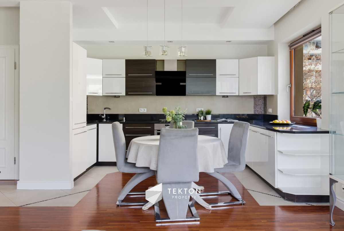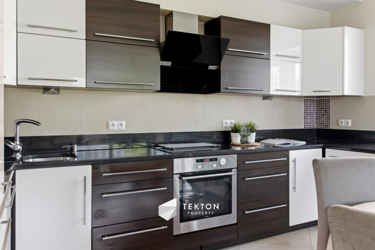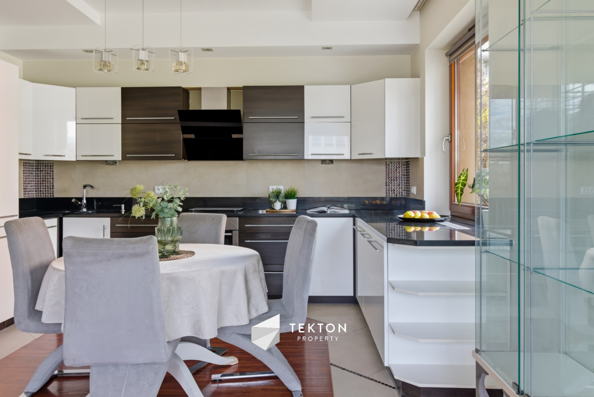 Na podłodze parkiet, drzwi drewniane, blat w kuchni granitowy, dwie łazienki. Bardzo jasne sypialnie z przylegającym balkonem