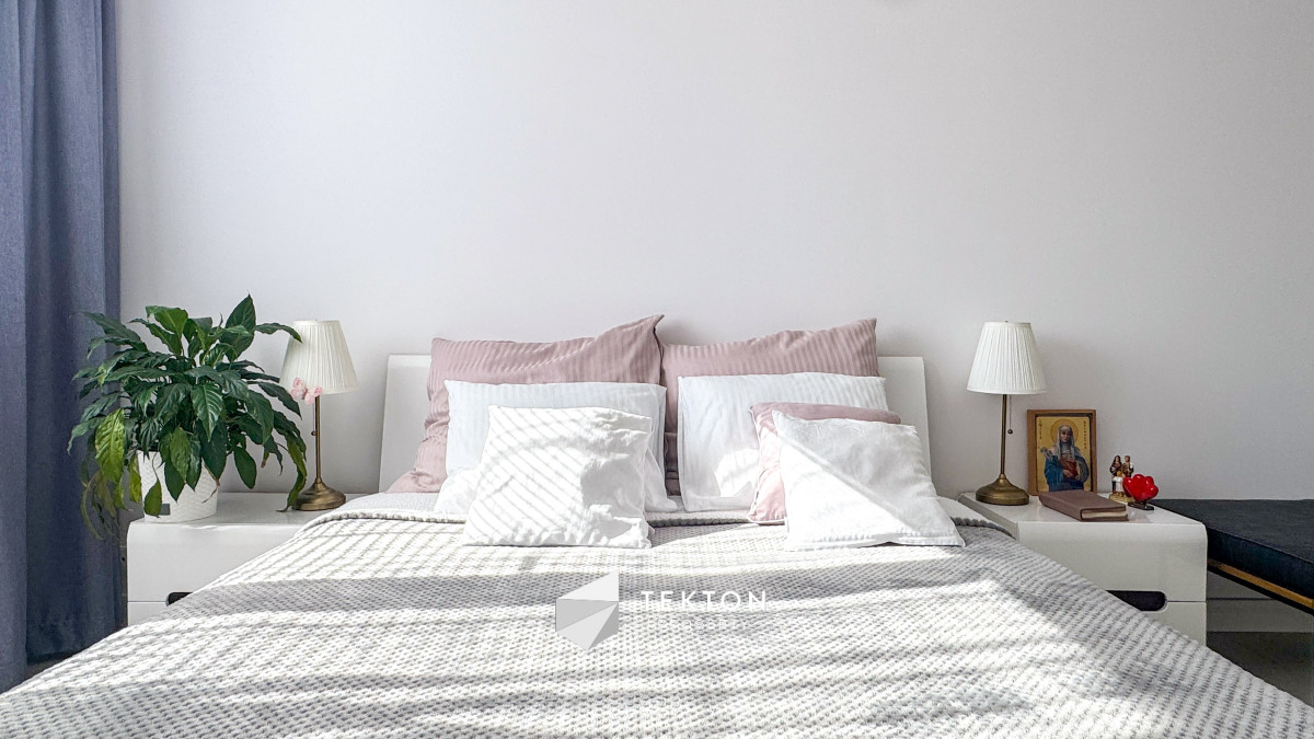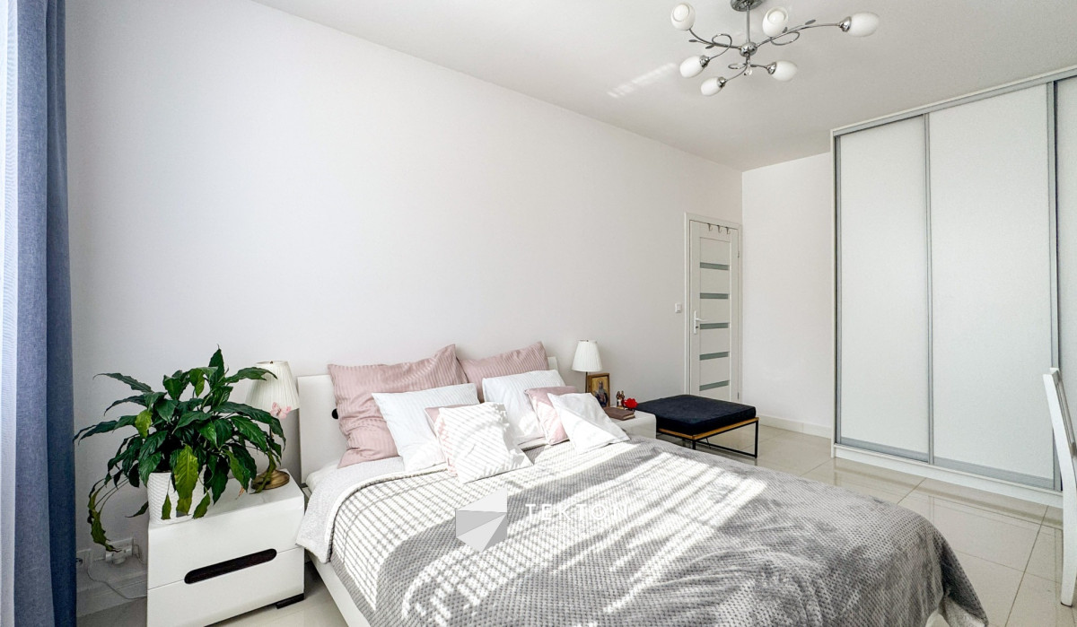 - Sypialnia – przestronna, jasna, z dużą szafą w zabudowie.
