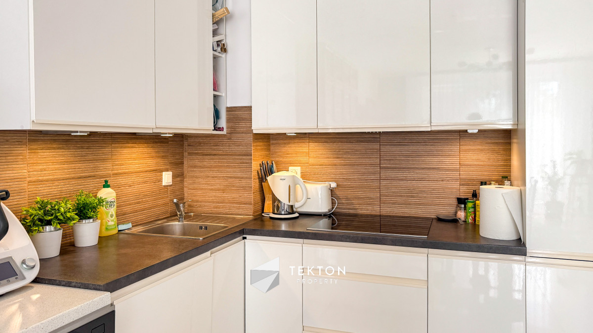 - nowoczesny standard wykończenia – gres szkliwiony w całym mieszkaniu, zabudowa meblowa i AGD w kuchni,
