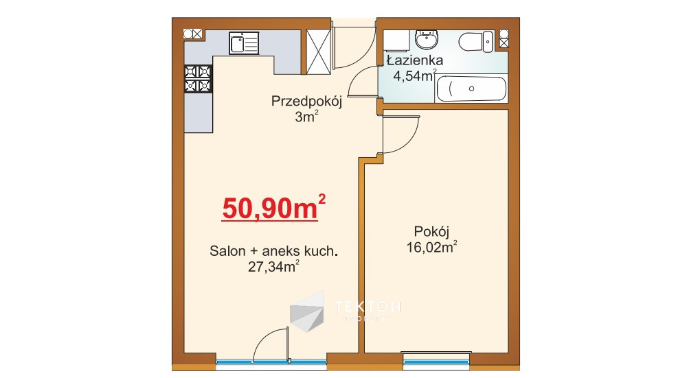 - Przedpokój – z praktyczną szafą wnękową, która pomieści wszystko, co potrzebne.
