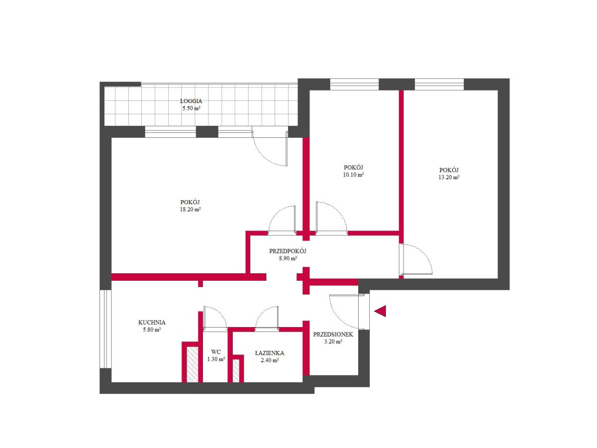 – Dwóch oddzielnych pokoi (13,2 m² oraz 10,1 m²),