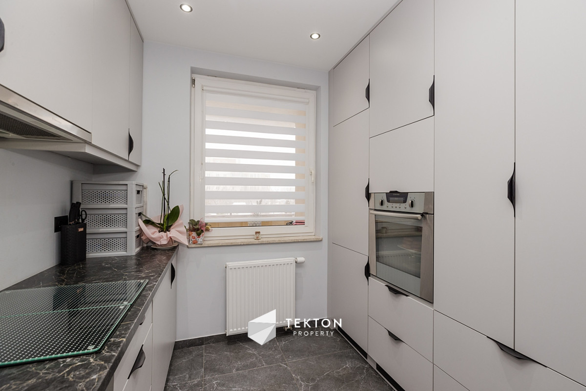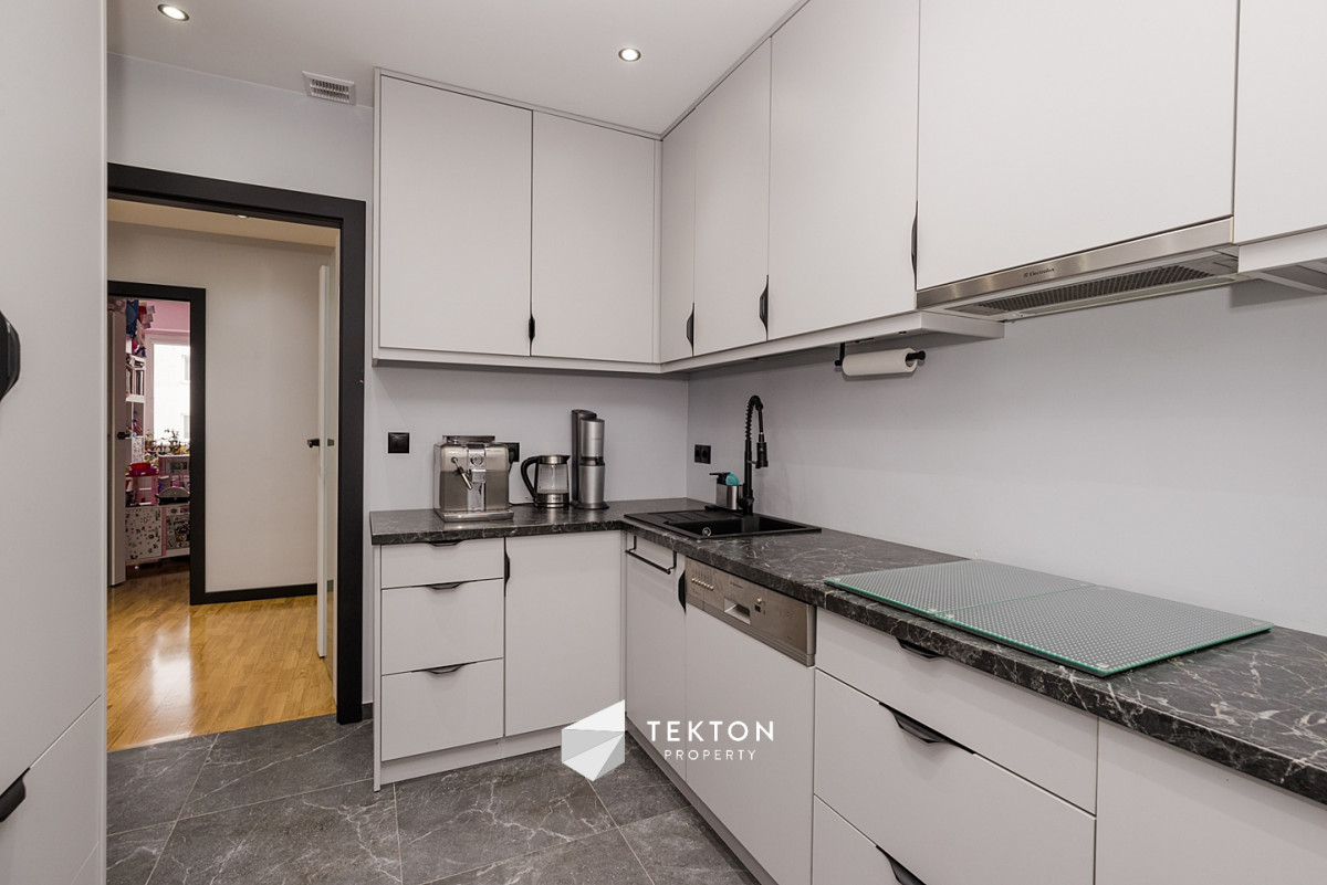 Kuchnia wyposażona jest w sprzęt AGD: lodówkę, zmywarkę, piekarnik, płytę indukcyjną oraz pralkę. Łazienka po remoncie, z wanną, prysznicem, toaletą i bidetem w systemie Geberit. Zamontowano nowe grzejniki oraz podwieszane sufity w kuchni, łazience i przedpokoju.