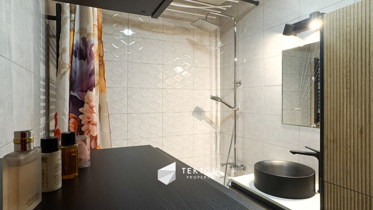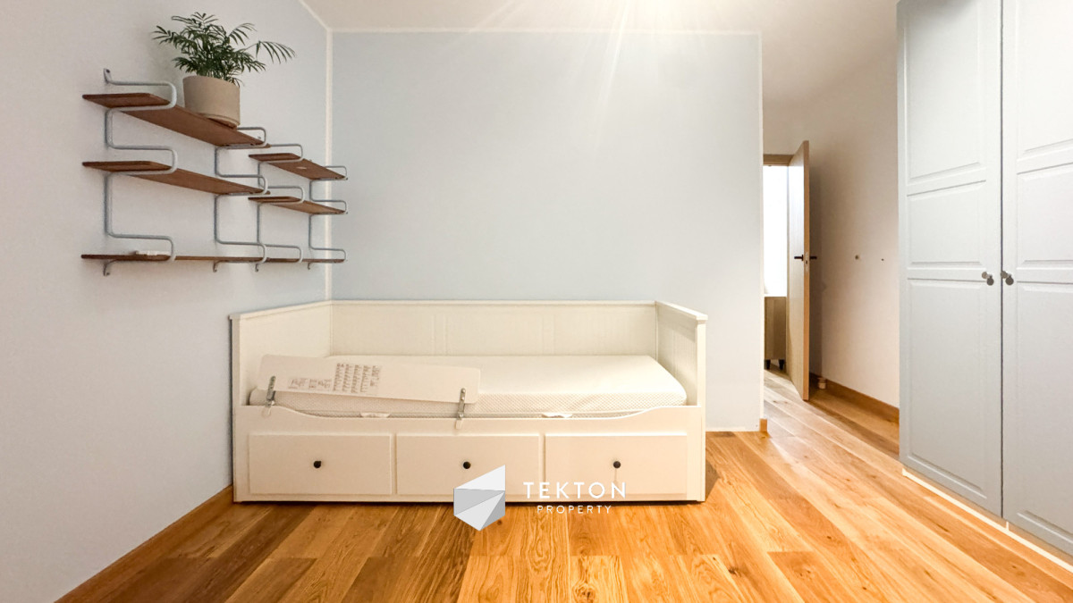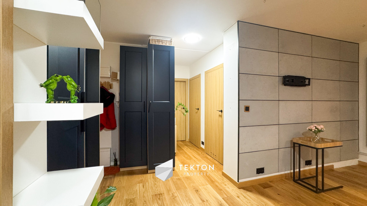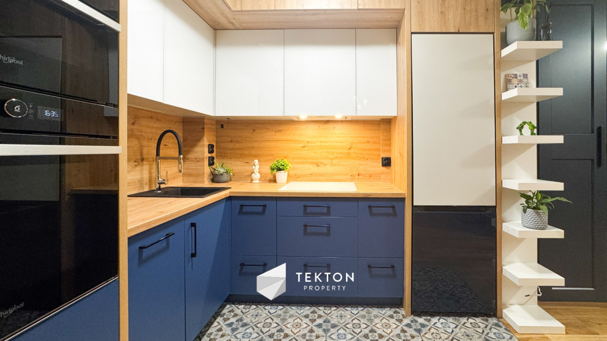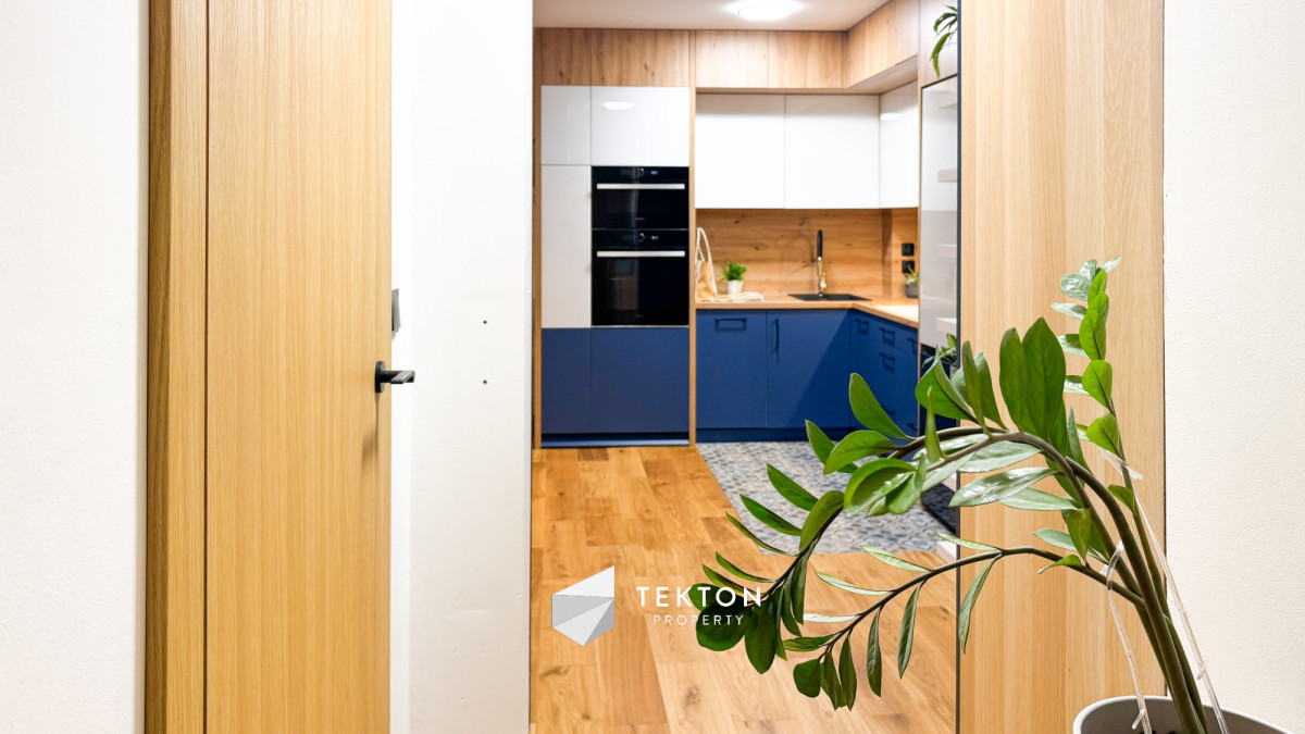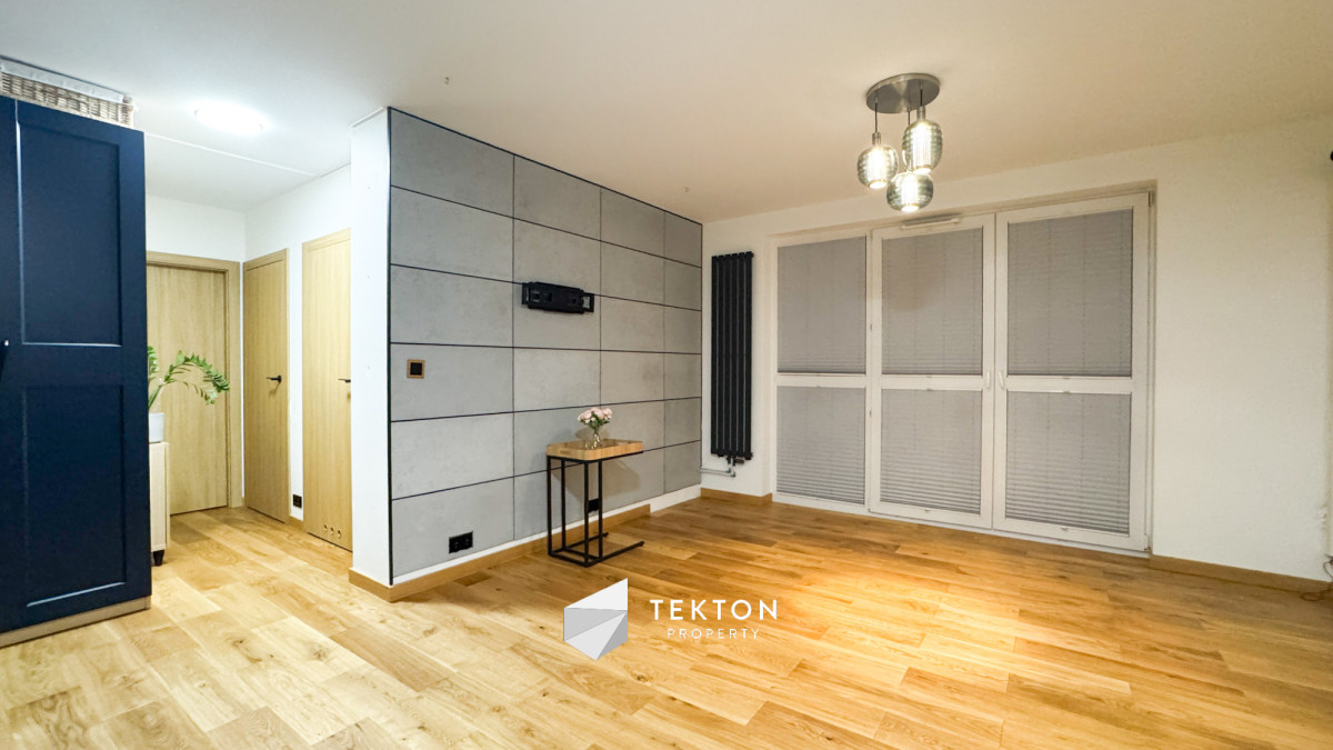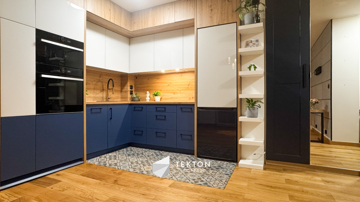 Salon połączony z widną kuchnią tworzy nowoczesną, otwartą przestrzeń dzienną. Kuchnia wyposażona jest w nowe meble oraz sprzęt AGD: lodówkę, zmywarkę, płytę indukcyjną, piekarnik, mikrofalę i okap. W mieszkaniu zamontowano klimatyzację, która znacząco podnosi komfort użytkowania w sezonie letnim.