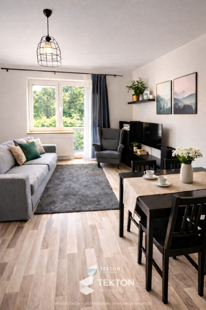 Mieszkanie posiada funkcjonalny układ pomieszczeń oraz balkon z przyjemnym widokiem na zieleń. To idealna propozycja dla osób poszukujących komfortowego miejsca do życia z dala od miejskiego zgiełku. Dodatkowym atutem są dwie duże piwnice, które znacząco zwiększają komfort codziennego użytkowania oraz zapewniają dużo miejsca do przechowywania.
