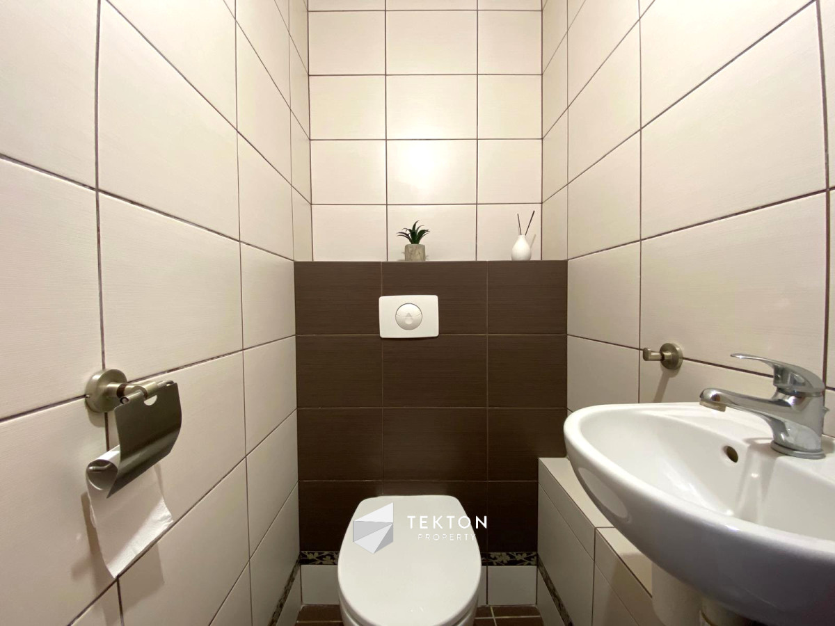 Łazienka i toaleta – świeżo po remoncie, wykończone w nowoczesnym stylu.
