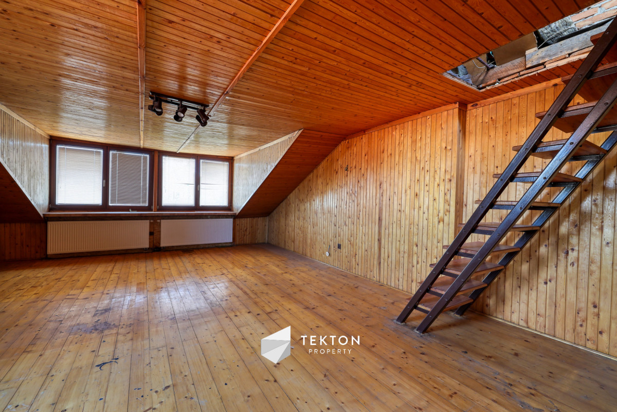 Dom o powierzchni 307,48 m² jest budynkiem dwukondygnacyjnym z użytkowym poddaszem oraz pełnym podpiwniczeniem. Został wybudowany w technologii tradycyjnej i jest podłączony do wszystkich mediów miejskich, w tym gazu, wody oraz kanalizacji. Nieruchomość wymaga remontu, co daje możliwość dostosowania jej do własnych potrzeb i aranżacji.