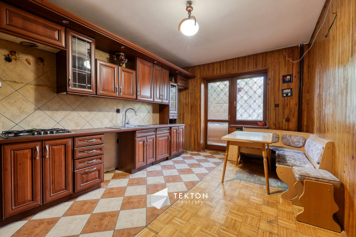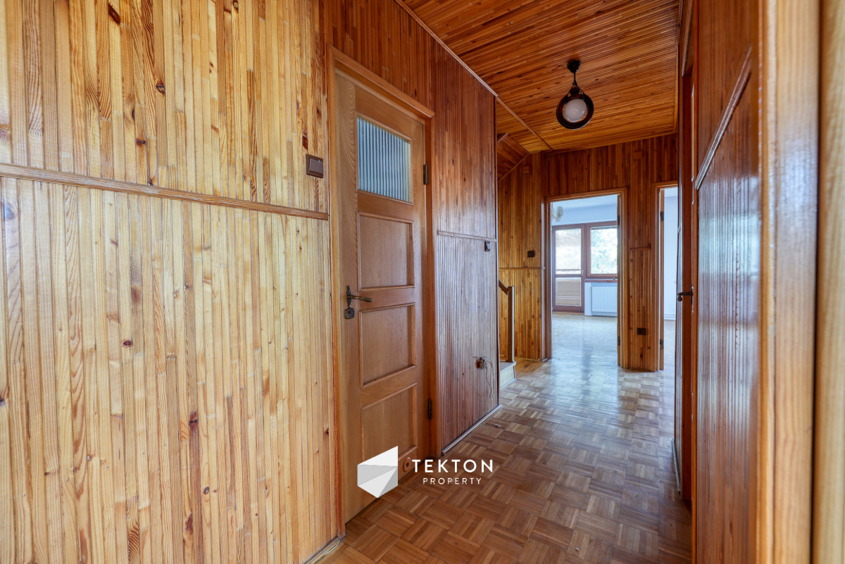 Dom charakteryzuje się funkcjonalnym układem pomieszczeń, który pozwala na wygodne zagospodarowanie przestrzeni. Wnętrza są dobrze doświetlone, a zastosowane materiały, takie jak drewniane podłogi czy stolarka, nadają nieruchomości klasyczny charakter. Kuchnia oraz łazienki są sprawne i po remontach, co umożliwia korzystanie z nich bez konieczności natychmiastowych prac.