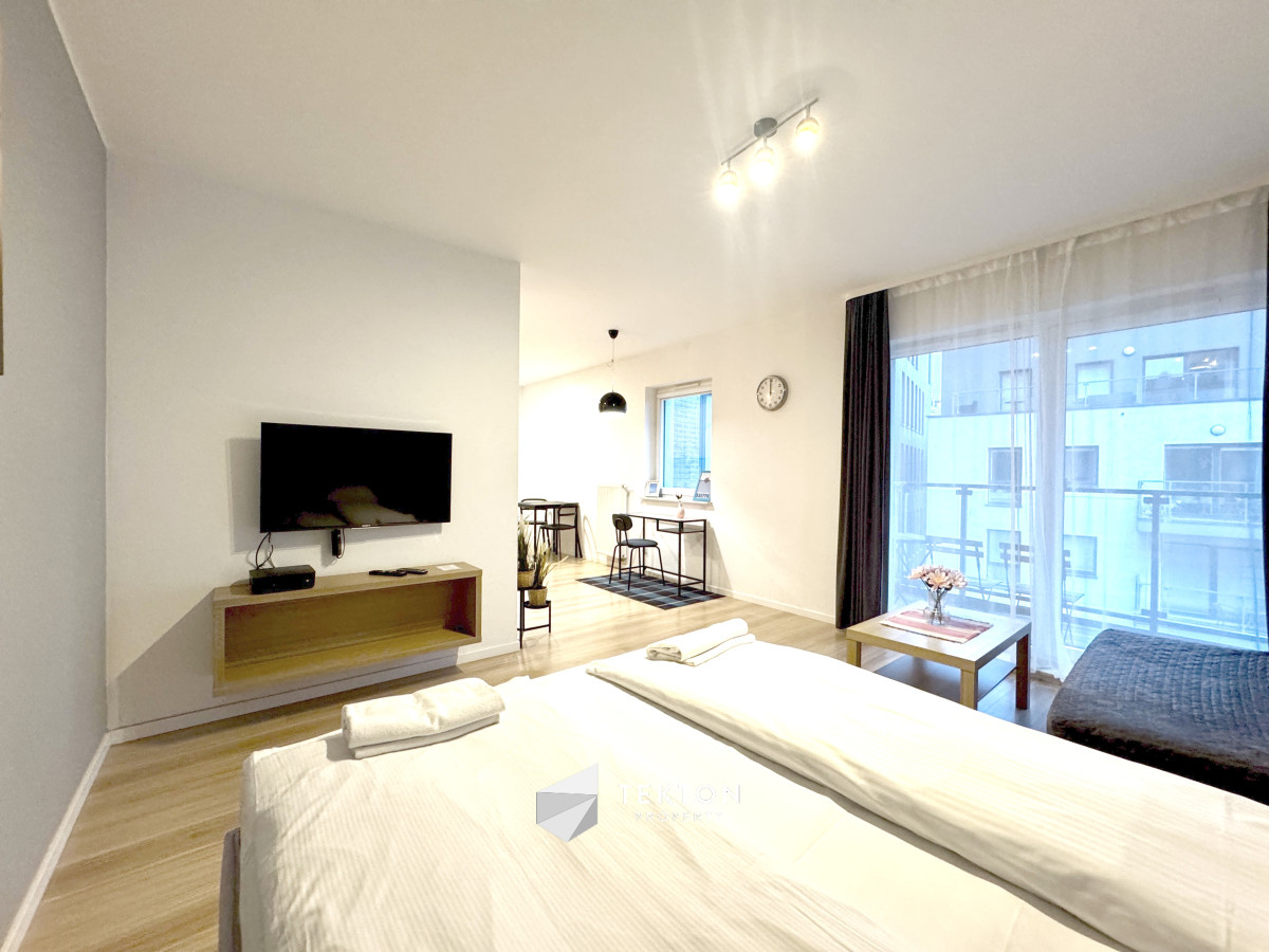 Apartament spełnia wszelkie kryteria domu nie tylko wakacyjnego, ale też nieruchomości  z olbrzymim potencjałem zwrotu z inwestycji. Umiejscowienie apartamentu na 4 piętrze zapewnia ciszę spokój. Położenie budynku pozwala nam szybko dotrzeć zarówno do ulicy Chmielnej jak i na deptak położony wzdłuż Wyspy Spichrzów nad Motławą z licznymi barami i restauracjami, a także z pomocą nowej, obrotowej kładki Św. Ducha, na Długie Pobrzeże Głównego Miasta. Apartament jest w pełni wyposażony, a składa się z pokoju dziennego z aneksem kuchennym oraz łazienki wyposażonej w misę WC, umywalkę i prysznic. Z salonu mamy wyjście na spory balkon o ekspozycji północno-wschodniej wyposażony w meble tarasowe.