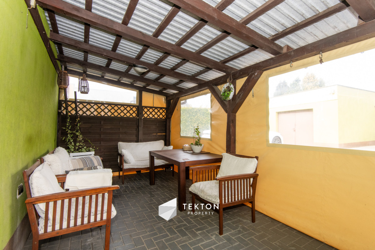 - Taras z zadaszeniem oraz zadbany ogród.