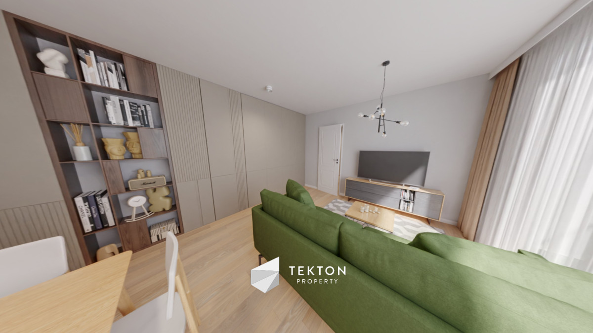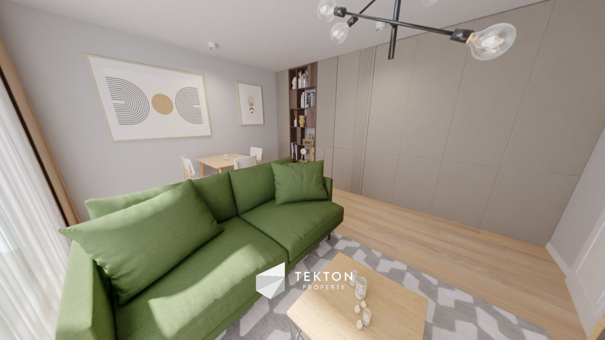 - Przestronny salon z wyjściem na balkon – widok na Las Dębiński. Pomieszczenie doświetlone przez większą część dnia.