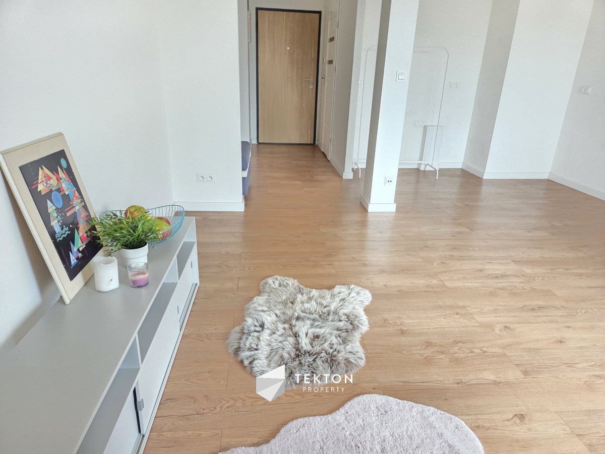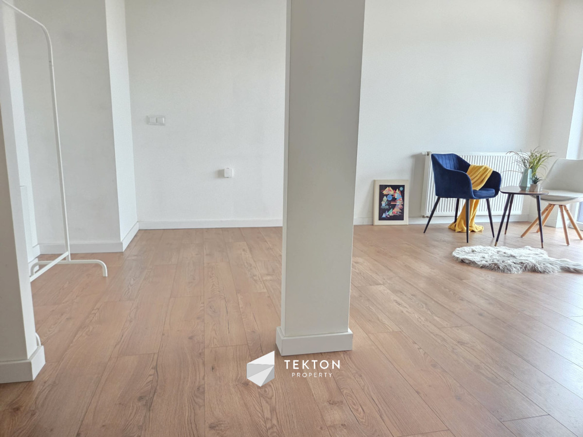 Przestronny salon daje możliwość wydzielenia dodatkowej strefy, np. sypialnianej lub biurowej, co zwiększa funkcjonalność mieszkania.