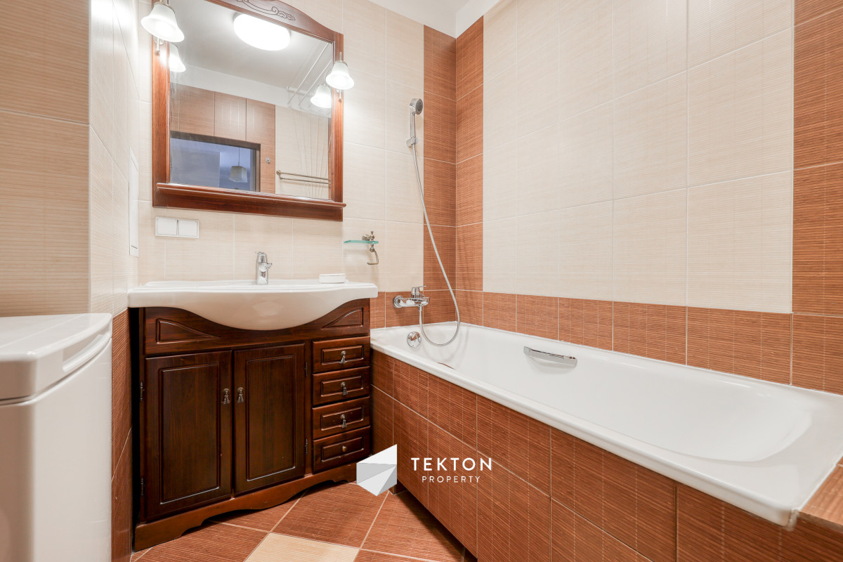 Mieszkanie składa się z salonu (21 m2), dwóch sypialni (14,1 m2 i 12 m2), kuchni, łazienki, toalety, garderoby, przedpokoju i zabudowanej loggii, z której można korzystać zarówno latem, jak i zimą. Mieszkanie jest urządzone, świeżo wymalowane i gotowe do wprowadzenia – do zakupu pozostają jedynie meble, te, które obecnie się w nim znajdują mogą pozostać lub być zabrane. Kuchnia, łazienka i toaleta są w pełni wyposażone. Dużym atutem mieszkania jest to, że jest ono dwustronne, z jednej strony okna wychodzą na pólnocny zachód, z drugiej zaś na południowy wschód, dzięki czemu mieszkanie jest dobrze doświetlone. Do mieszkania przynależy piwnica, nabywca będzie miał również prawo do korzystania z miejsca parkingowego naziemnego, z którego tytułu uiszcza się opłatę w wysokości 140 zł miesięcznie (jednakże spółdzielnia ma w planach zakup placu, na którym znajduje się parking więc opłata ta zapewne zmaleje). Czynsz wynosi zaś 1500 zł, dodatkowo płatny jest gaz i prąd według zużycia.