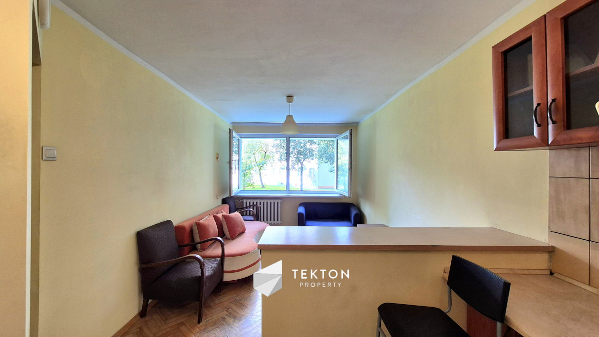 Mieszkanie o niewielkim metrażu 35,59m2 z wyraźnie wydzieloną strefą dzienną i prywatną. Lokal znajduje się na wysokim parterze bez balkonu. Pokoje rozkładowe