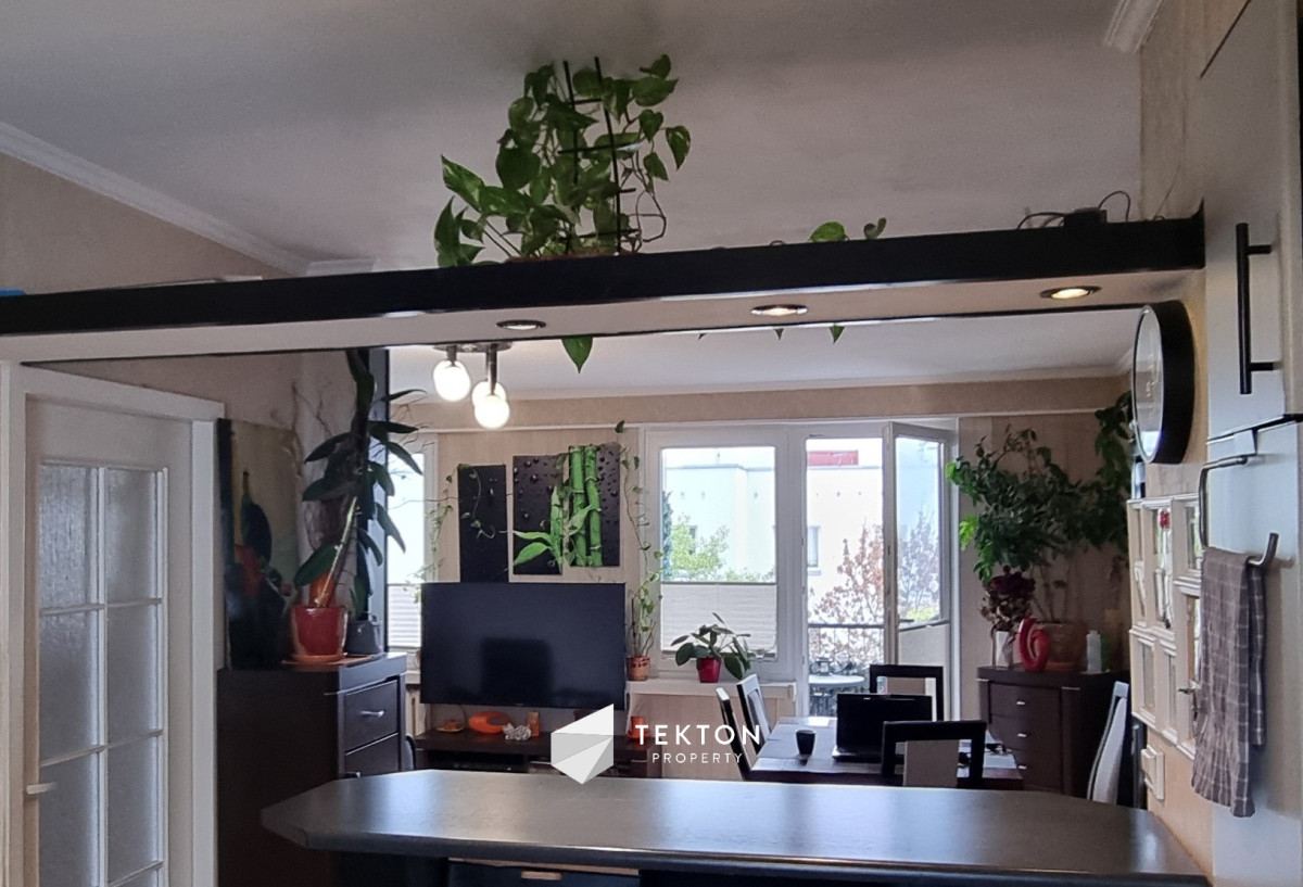 przestronnego salonu (20m2) z dużym oknem i balkonem