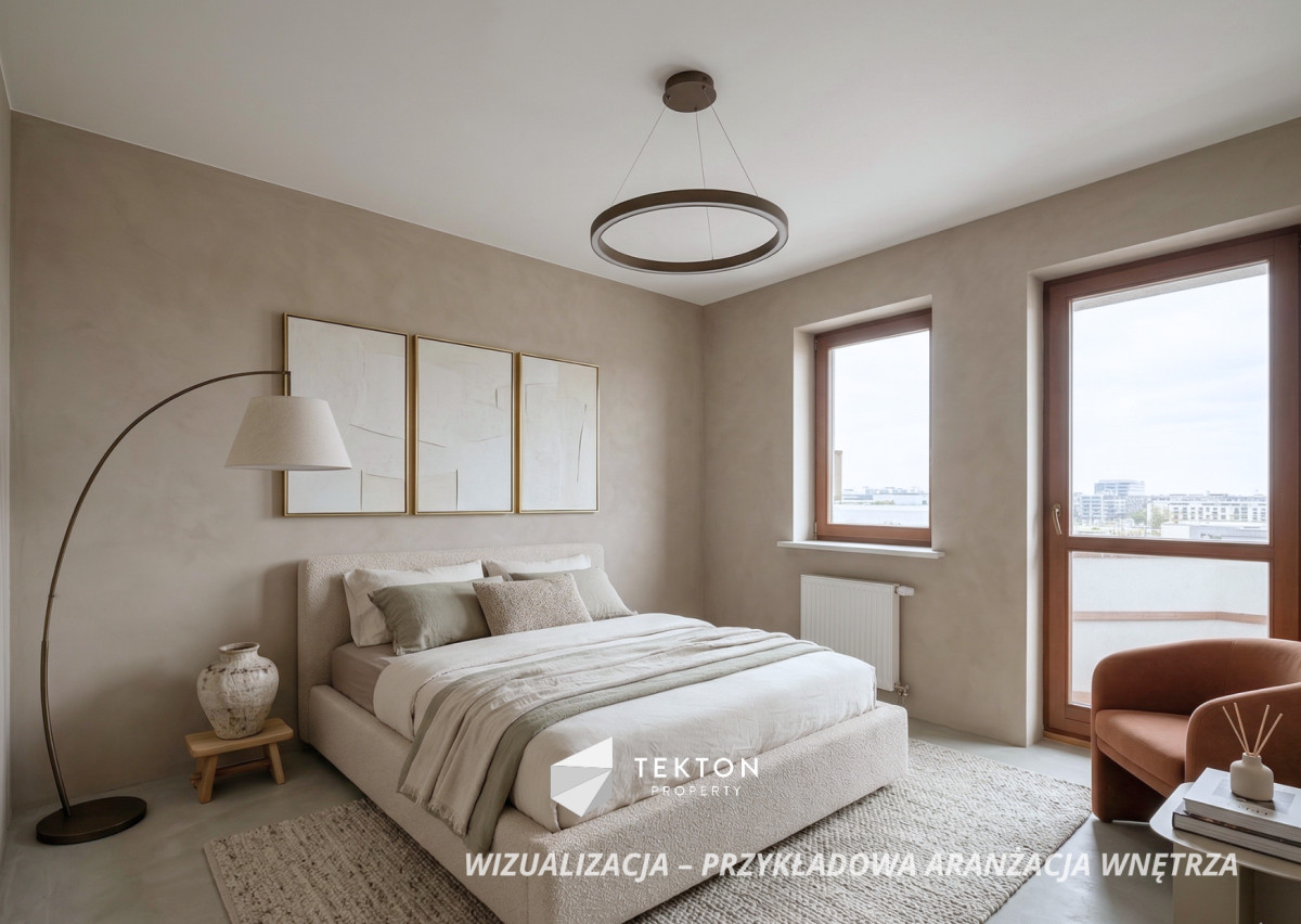 - Duży balkon stanowiący dodatkową przestrzeń do wypoczynku.