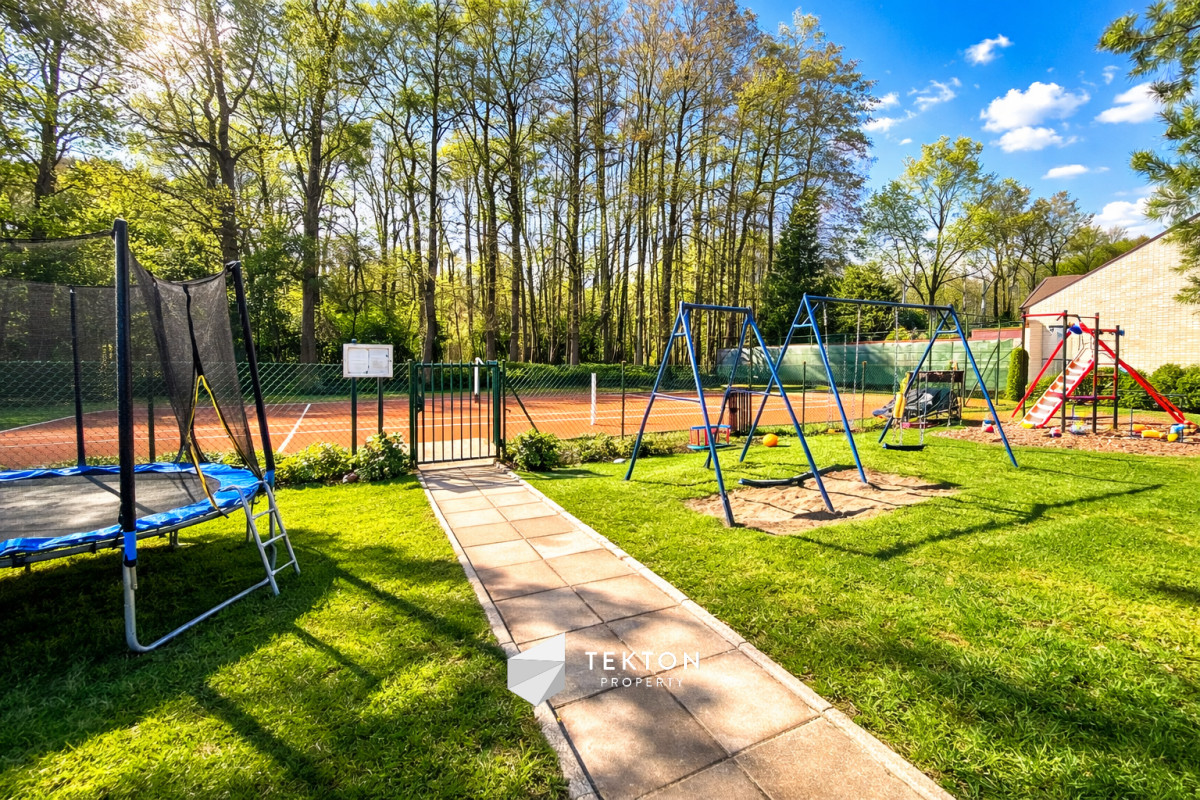 Osiedle oferuje mieszkańcom dostęp do kortu tenisowego, placu zabaw oraz terenów zielonych. Dodatkowym atutem jest bezpośrednie wyjście do parku oraz ogólnodostępne miejsca parkingowe dla mieszkańców i gości.
