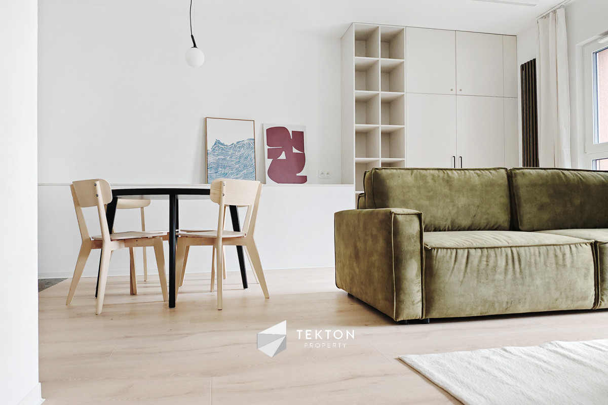 Nowoczesny apartament na Widzie – Vilda Moderne, budynek 2024r. Formalnie przestronne 1-pok mieszkanie o powierzchni 51,53m2. Pomieszczenie garderoby z oknem zostało przez projektantkę wnętrz umiejętnie zaadaptowane na wydzieloną strefę sypialną. Mieszkanie jest całkowicie wykończone przy użyciu materiałów wysokiej klasy. Zabudowy stolarskie na wymiar, nowe sprzęty AGD, dbałość o detale oświetleniowe oraz spójna kolorystyka sprawiają, że lokal jest gotowy do wprowadzenia lub dalszego wynajmu bez żadnych nakładów finansowych.