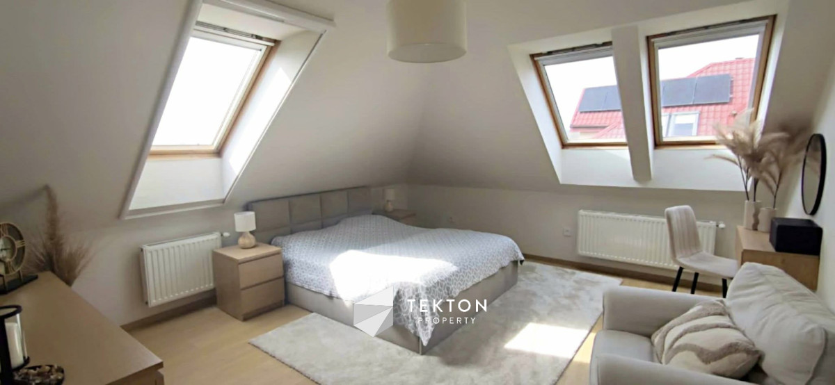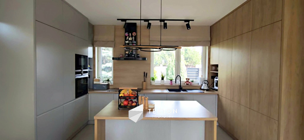 Dom prezentuje się imponująco – idealny dla osób ceniących nowoczesny styl i prestiż. Zapewnia wygodę użytkowania: piec gazowy, klimatyzacja, rolety zewnętrzne na pilota, monitoring i alarm.