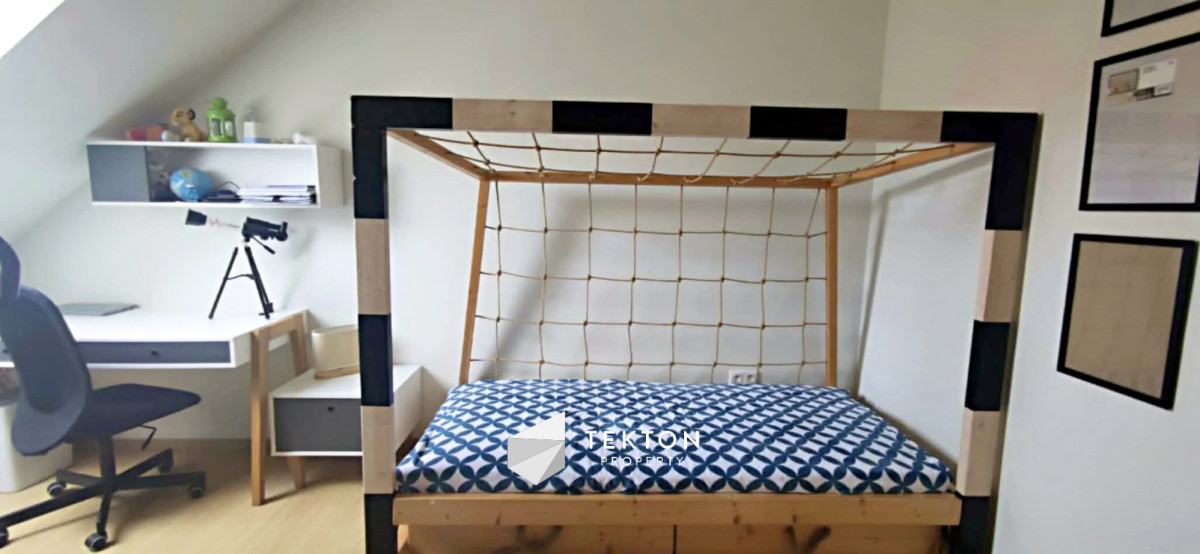 Pięć komfortowych pokoi dających pełną swobodę aranżacji — sypialnia, gabinet, pokoje dziecięce i garderoba.
