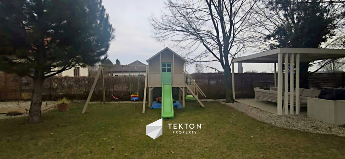 Wyjątkowy ogród – stylowa altana ze strefą BBQ, plac zabaw i mnóstwo przestrzeni na realizowanie własnych pomysłów.