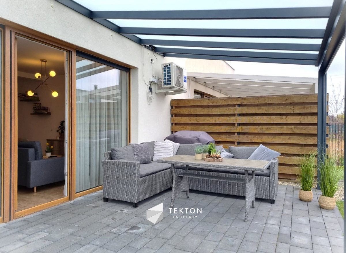 - Taras z aluminiowym zadaszeniem i roletą typu screen