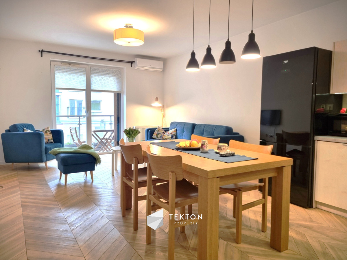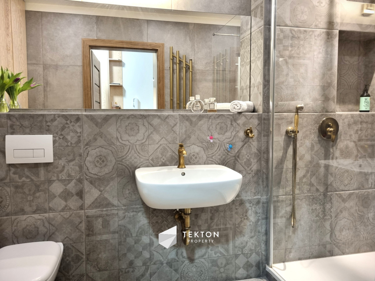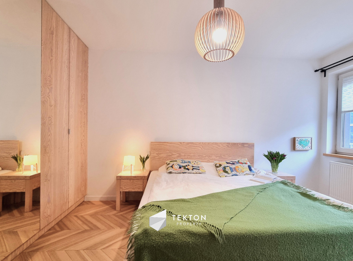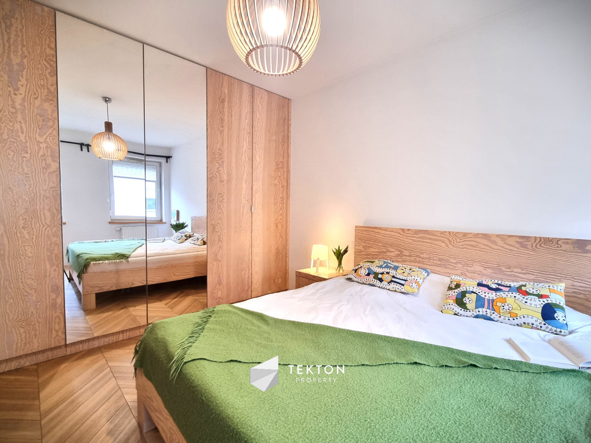 Mieszkanie wykończone z dbałością o detale i funkcjonalność. W pokojach położono deskę jesionową w elegancką jodełkę, w przedpokoju i łazience estetyczne kafle. Kuchnia w zabudowie, otwarta na salon. W sypialni duże łóżko oraz sześciodrzwiowa szafa w zabudowie. Instalacja elektryczna została indywidualnie zaprojektowana na etapie budowy – zwiększona liczba gniazdek oraz praktyczne rozwiązania, m.in. możliwość wyłączenia światła w sypialni bezpośrednio z łóżka. Ekspozycja południowa zapewnia przyjemne światło.