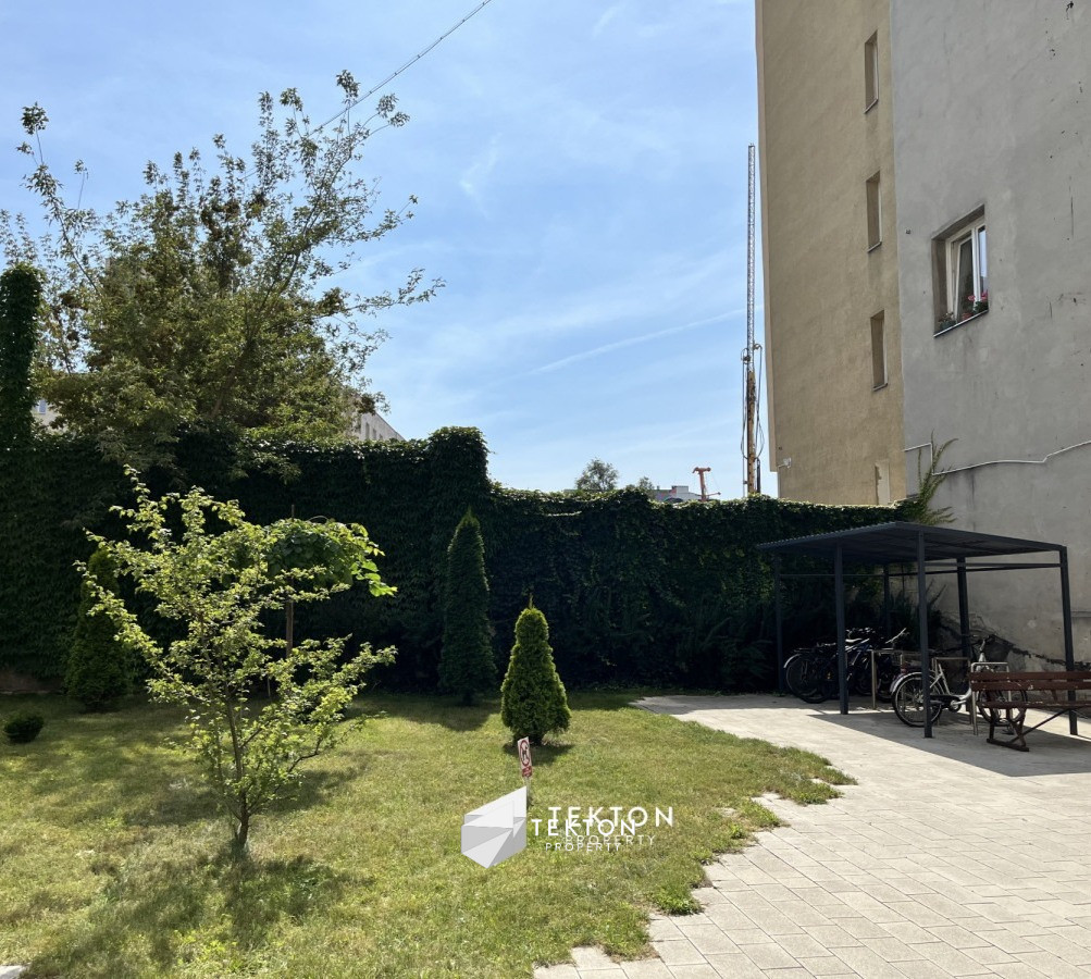 Na zrewitalizowanym dziedzińcu kamienicy mieści się zadbany ogródek.