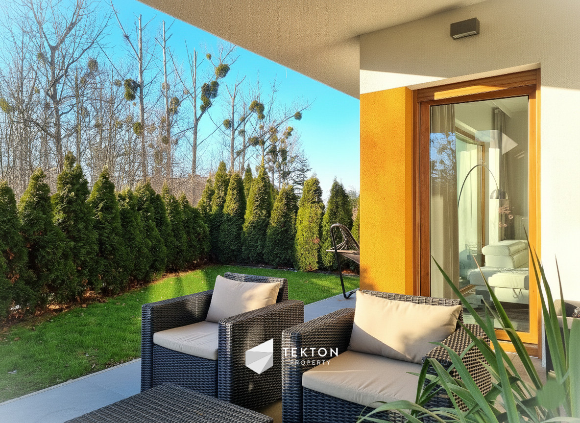 Nieruchomość wyróżnia się wysokim standardem wykończenia, dużym tarasem z ogródkiem oraz bezpośrednim sąsiedztwem lasu, co zapewnia ciszę, prywatność i wyjątkowy komfort codziennego życia.