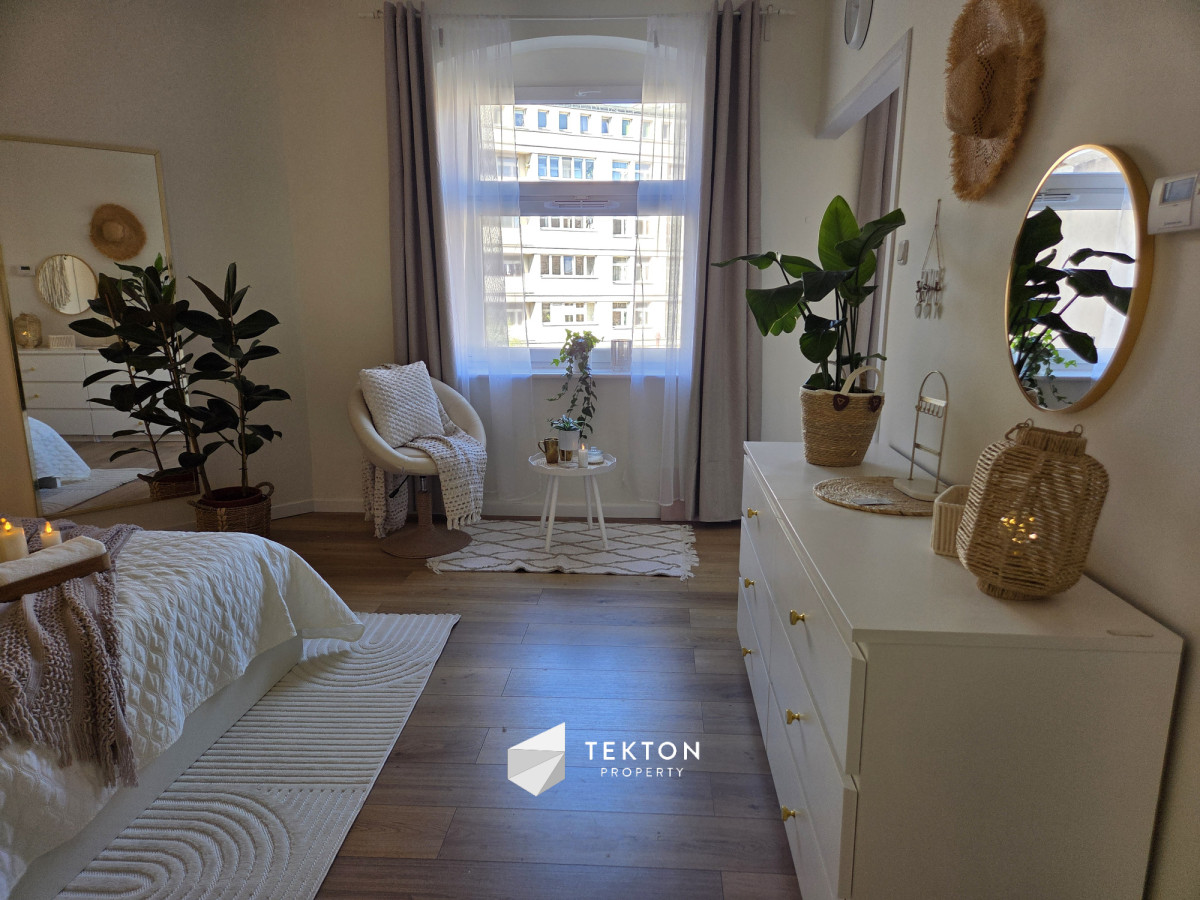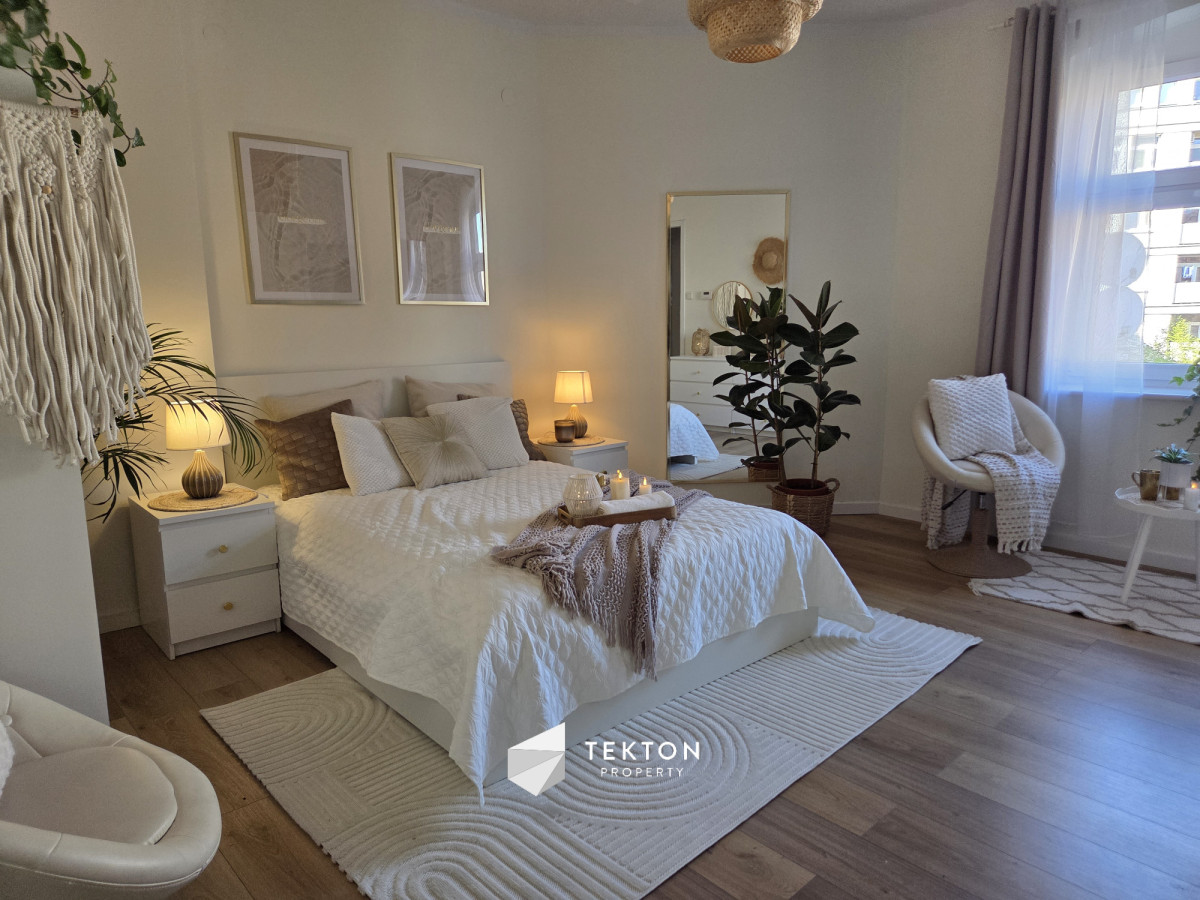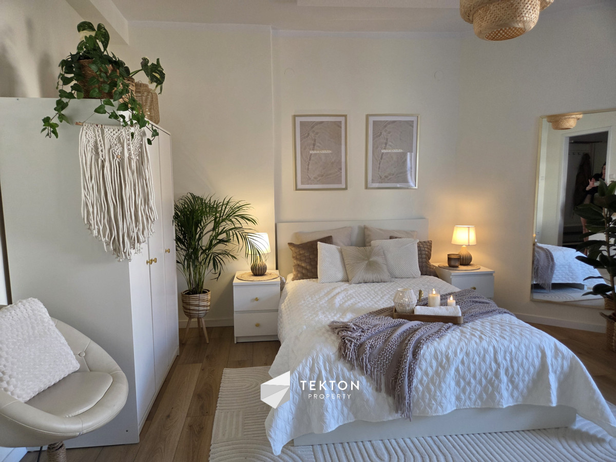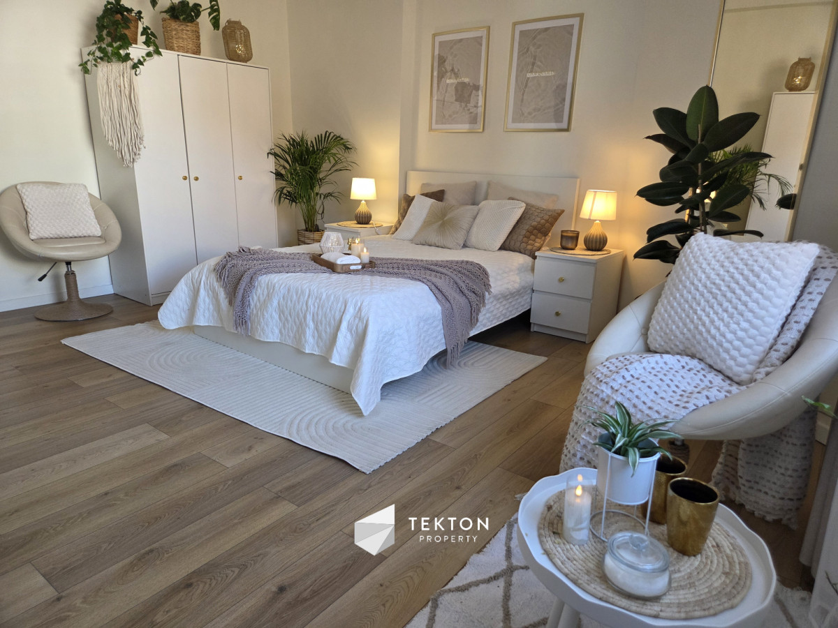Mieszkanie zostało urządzone z dużą dbałością o detale w estetyce Boho Soft Luxury, wykorzystującej naturalne materiały, stonowane kolory i przytulne tekstury. Całość tworzy harmonijną przestrzeń sprzyjającą codziennemu komfortowi.