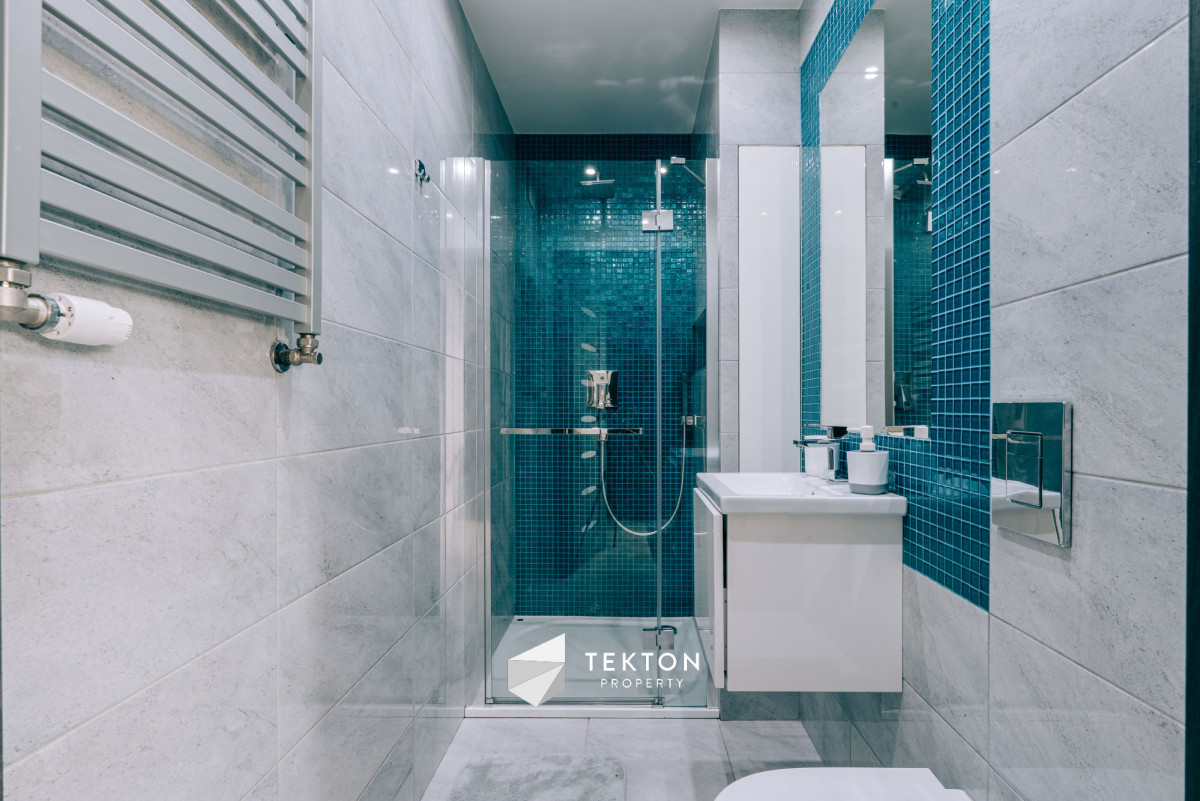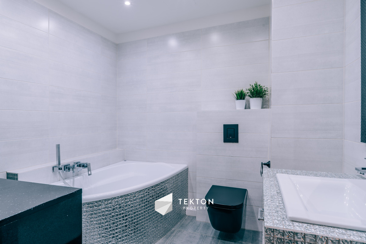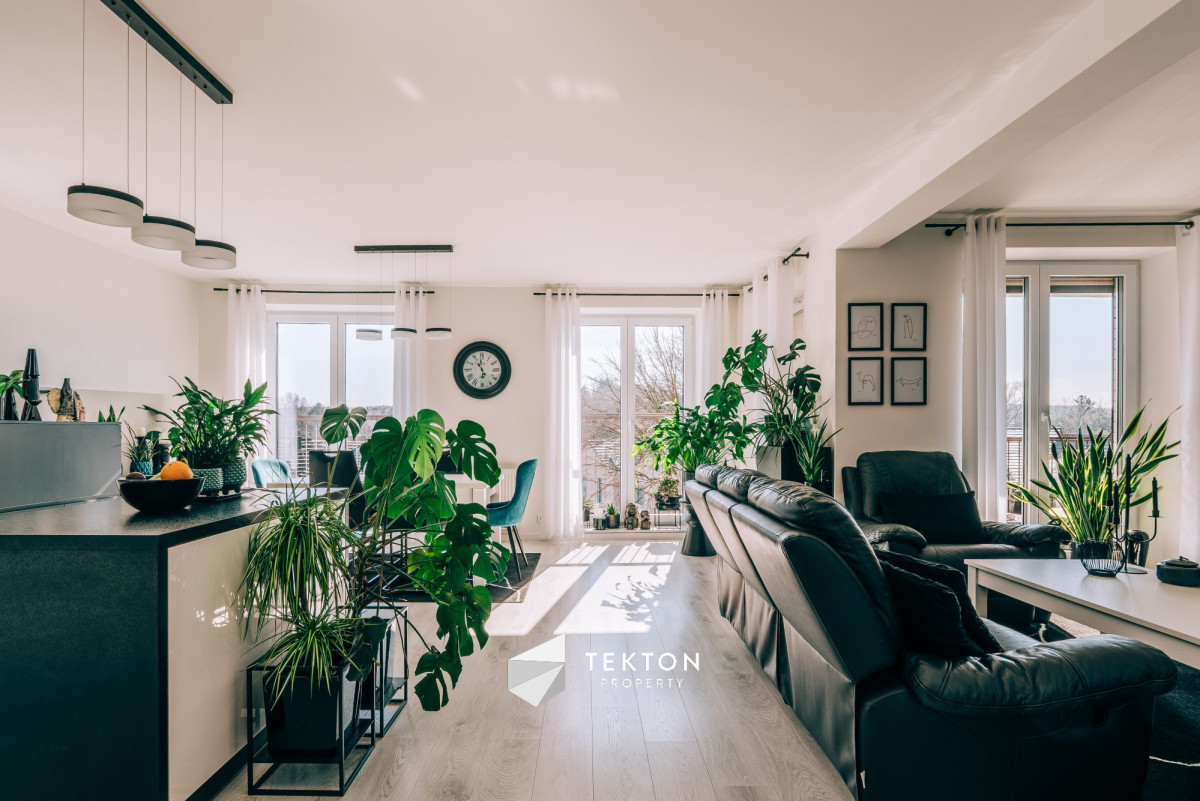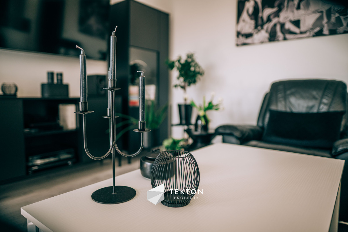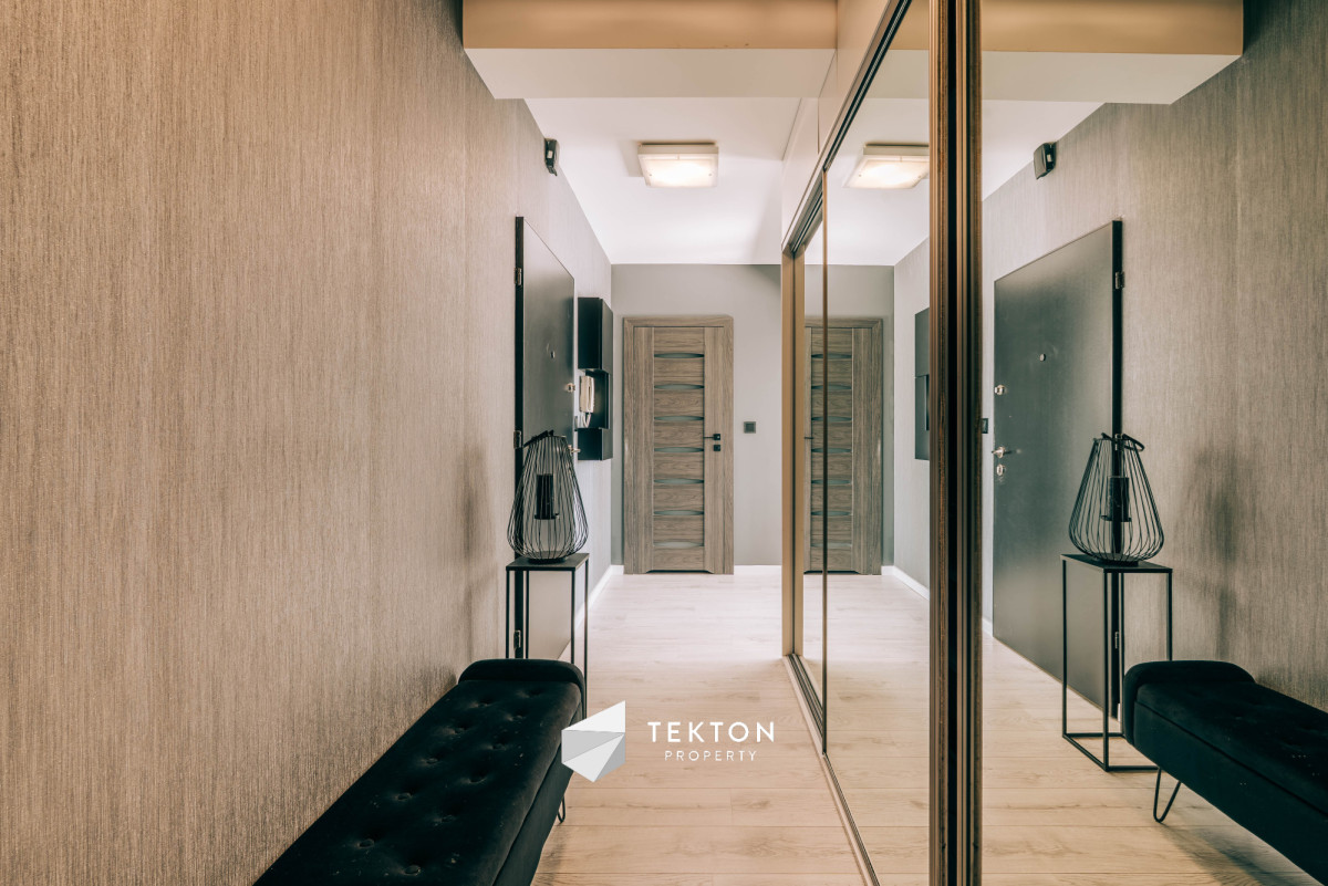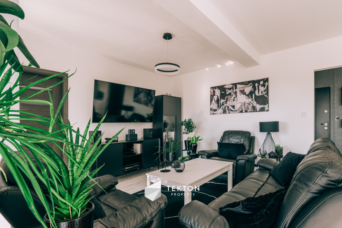 Wnętrze zostało wykończone z wykorzystaniem wysokiej klasy materiałów, w tym paneli premium oraz zabudów stolarskich wykonywanych na zamówienie. Kuchnia wyposażona jest w nowoczesne sprzęty AGD, a okna trzyszybowe zapewniają bardzo dobrą izolację termiczną i akustyczną.
