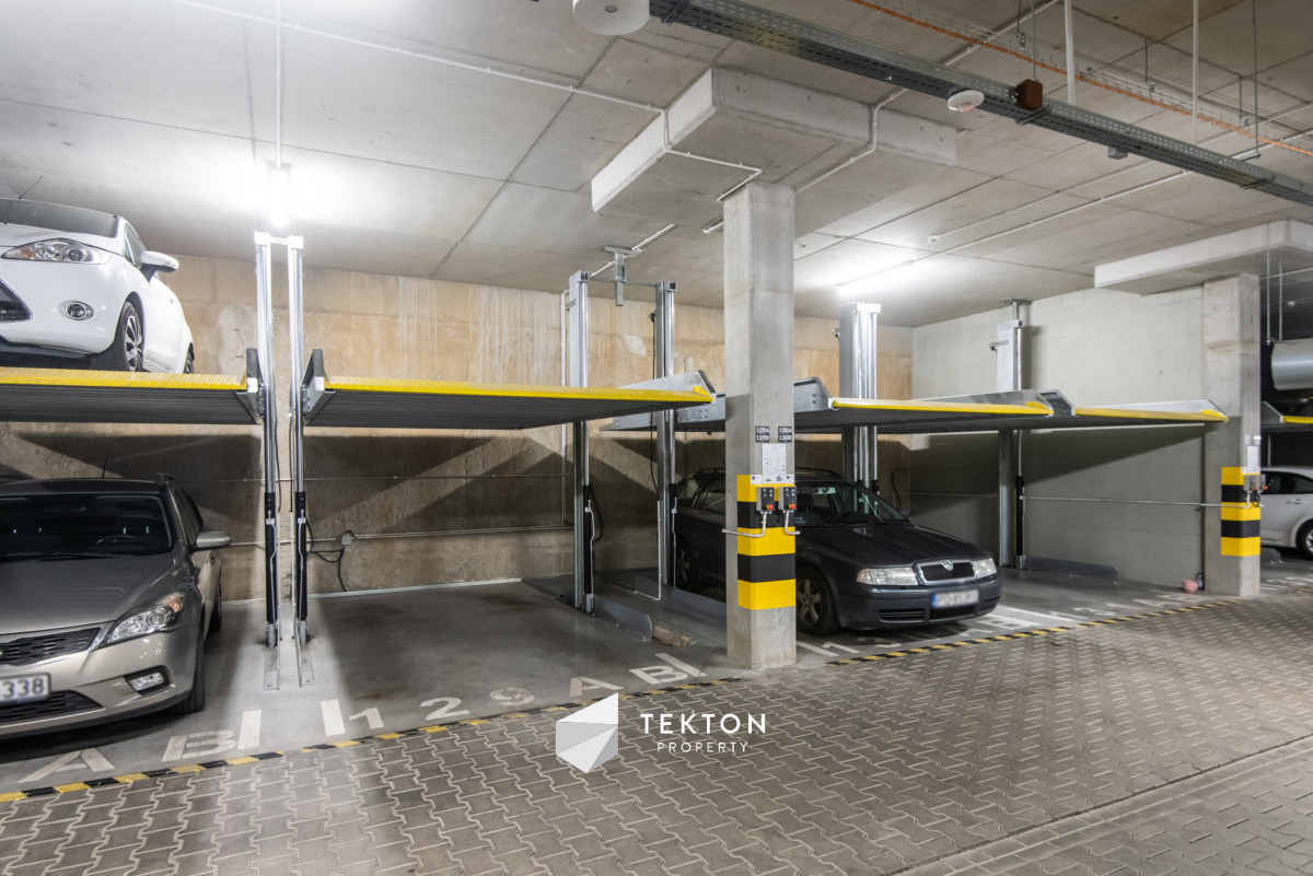 Do mieszkania przynależy podwójne miejsce postojowe w hali garażowej (system platformowy) – obligatoryjny zakup, cena: 50 000 zł